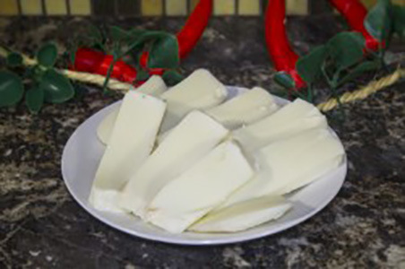Hak de greens, snijd de pekelkaas in dunne plakjes.