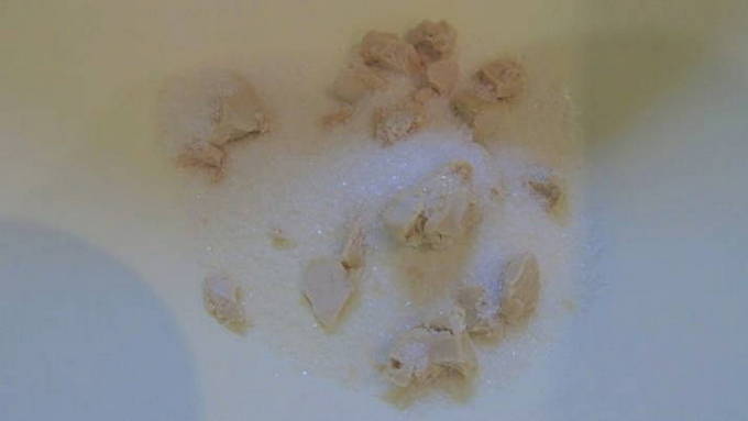 - Verkruimel de gist en bedek met suiker.