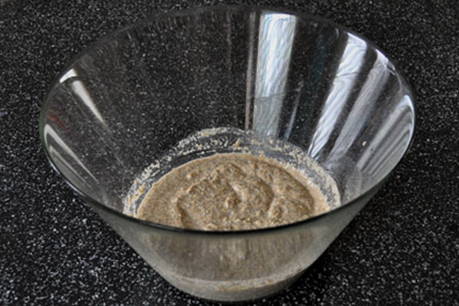 - Eerst moet je de startercultuur voorbereiden. Meng in een kom een glas roggemeel en een glas water. Dek de kom af met een handdoek en laat 3 dagen warm staan. Roer de starter elke 24 uur om.