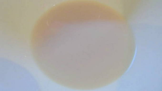 - Giet de mout in een kom, giet er kokend water over, roer en laat afkoelen.