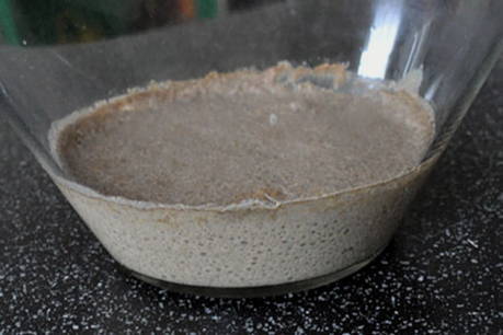 - Op de derde dag moet het zuurdeeg vloeibaarder worden en beginnen te borrelen.