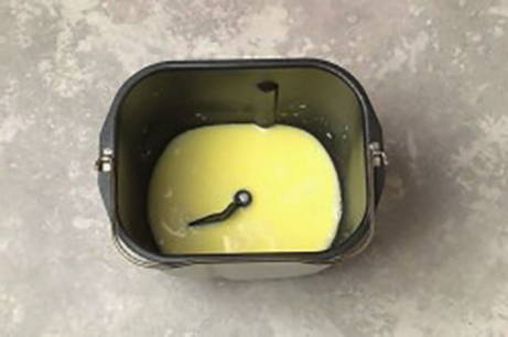 - Smelt de boter op laag vuur. voeg melk toe, roer en haal van het vuur. Koel het mengsel tot 35 graden en giet het vervolgens in de emmer van de broodmachine.