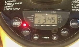 - Wanneer het deeg gekneed is, is het niet meer aan te raden om de deksel van de broodmachine te openen. Het hele programma duurt 3 uur en 52 minuten.