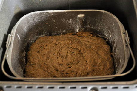 - Nu kunt u overgaan tot het plaatsen van de ingrediënten in de broodbakmachine. Doe in een emmer een glas rogge- en tarwebloem, karwijzaad, melasse, zout en giet er warme thee bij, voeg ook een glas zuurdesem toe. Activeer in het broodmachinemenu het programma Basis Brood en wacht op het geluidssignaal dat het brood klaar is.