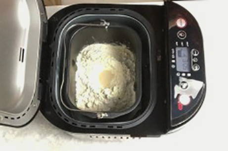- De broodbakmachine kneedt het deeg en geeft het de tijd om te rijzen.
