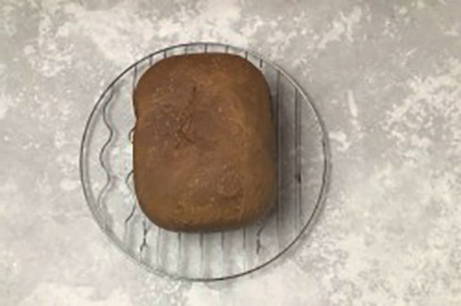 De broodbakmachine geeft met een geluidssignaal aan dat het brood klaar is. Koel het brood op een rooster en serveer.