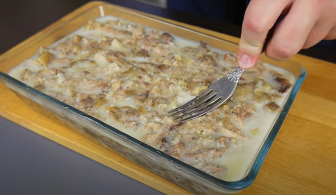 - Leg op de bodem van de vorm zorgvuldig gesneden wortelen en leg dan het vlees.