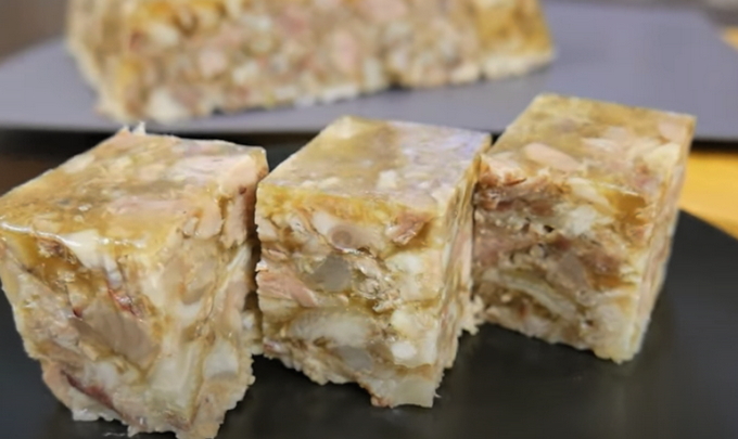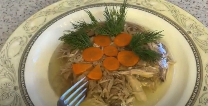 Hoe kip-gelei vlees koken zonder gelatine toe te voegen?
