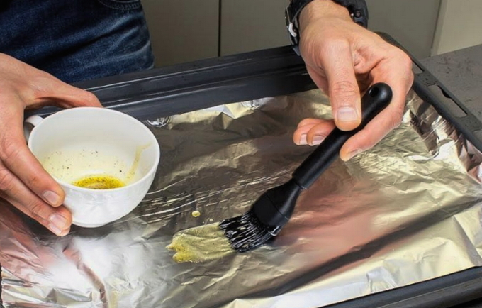 - Bedek de bakplaat met een vel folie en vet in met plantaardige olie. Leg kalkoendijen en drumsticks, gewassen wortelen, gesnipperde ui en knoflookteentjes op de folie. Plaats een bakplaat met vlees en groenten in een goed verwarmde oven (200 ° C) gedurende 25 minuten. Gedurende deze tijd heeft het vlees de tijd om volledig op te warmen en zullen de groenten een aangenaam aroma beginnen uit te stralen.