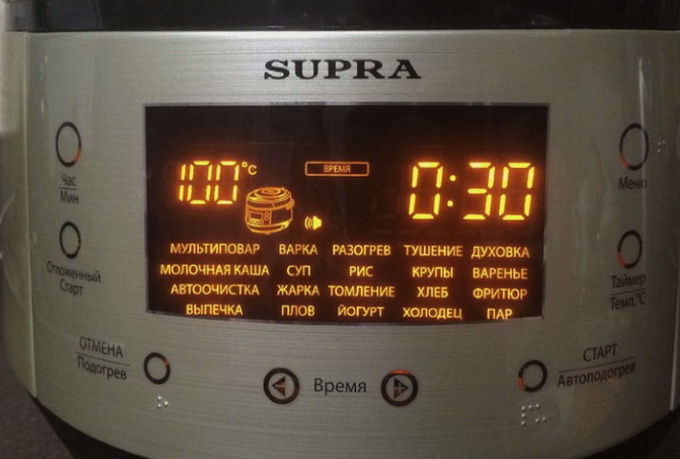 - Zet de oven uit en plaats het vlees en de groenten in de multicookerkom. Vul de inhoud van de kom met 3-3,5 liter water (zorg ervoor dat het water de maximale waarde op de zijkant van de kom niet overschrijdt). Vergeet ook niet om peper, zout en gewassen peterselie in de kom te doen. Stel de modus "KOKEN" in op 3,5-4 uur. Sluit het deksel van het apparaat en druk op de "START"-knop.