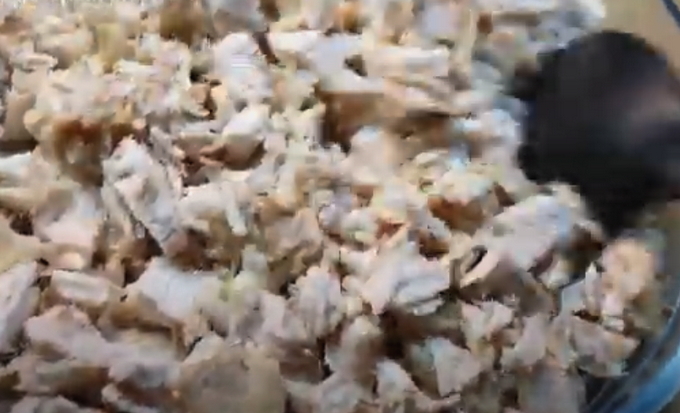 - Haal het vlees uit elkaar en scheid het van de botten (zorg ervoor dat je geen kleine botten mist).
