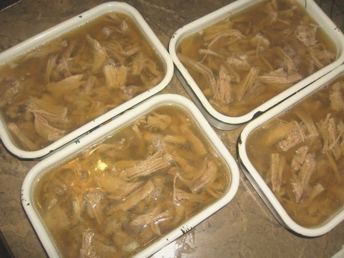 - Een eenvoudig recept voor het maken van kip in gelei met kalkoen