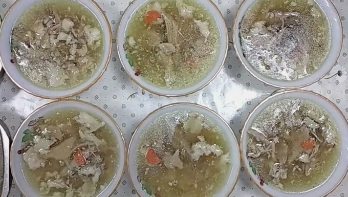 - We doen al het vlees in een grote pan, doen daar wortelen, paprika's, uien, laurierblaadjes en knoflook. Breng aan de kook, verwijder regelmatig het schuim met een lepel, laat de pan 10 uur op laag vuur staan, zout de bouillon een uur voor het einde van het koken.