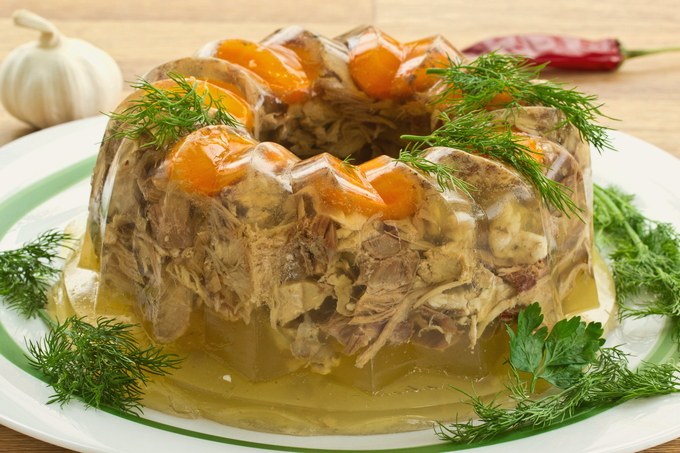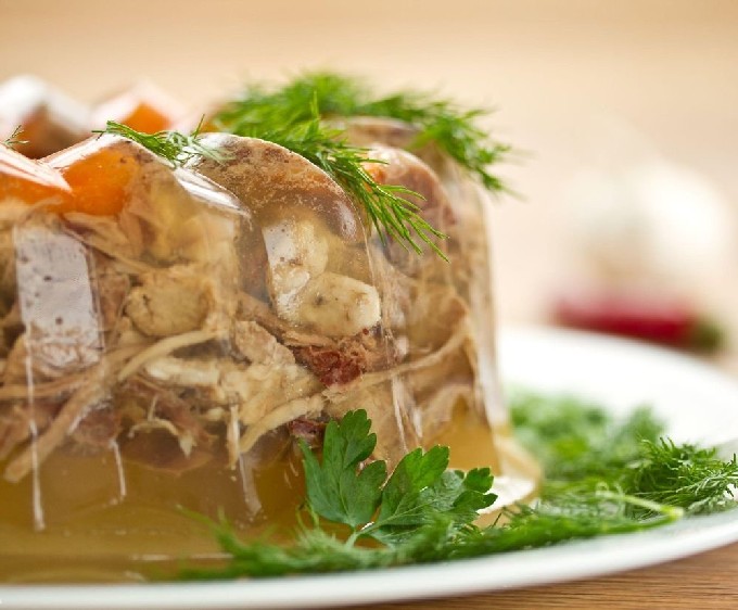 Volgens de gevestigde traditie is geen feesttafel compleet zonder gelei of aspic, de ingrediënten kunnen anders zijn. We bieden een stapsgewijs recept voor kippengelei met gelatine.