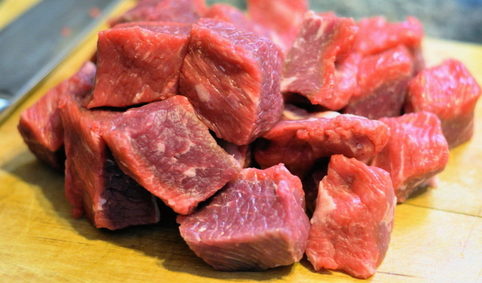 - Wij demonteren grote stukken vlees in kleinere stukken. Week het vlees 5-6 uur in koud water.