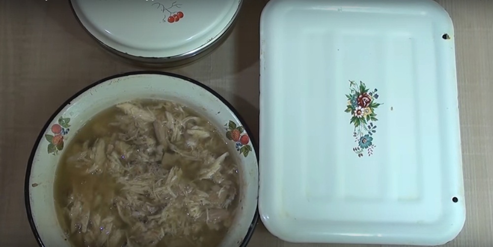 Hoe kip-gelei vlees koken zonder gelatine toe te voegen?