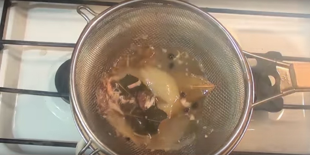 - De bouillon moet worden gefilterd door een zeef met gaas dat in meerdere lagen is gevouwen.