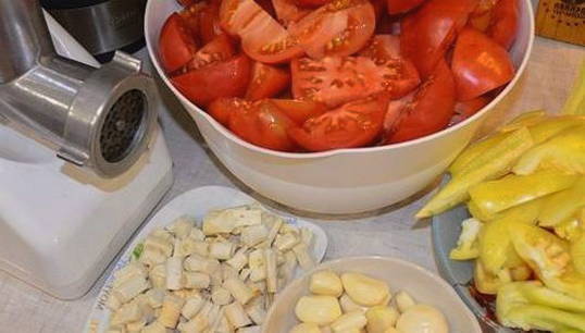 - Hoe mierikswortel met tomaten en knoflook te bereiden met koken voor de winter?