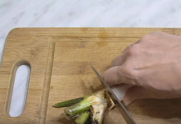 - Schil de mierikswortelwortel, was goed en giet er een paar minuten kokend water over. Pel de knoflook.