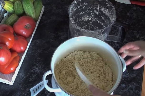 - Draai vervolgens alle bereide ingrediënten door een vleesmolen.