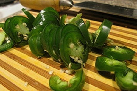 - Snijd hete pepers in ringen.