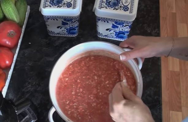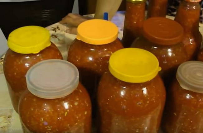 Je hoeft geen komkommers en tomaten te rollen voor de winter, maar de shit moet gedaan worden. Deze warme snack kan zelfs met brood gegeten worden. Bovendien wordt de smaak met de toevoeging van appels nog verfijnder.