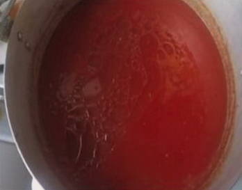 - Was de tomaten, maak kruissneden in de groenten en laat ze 1-2 minuten in kokend water zakken. Verwijder vervolgens, beginnend bij de incisies, de huid. Maal de tomaten met een blender.