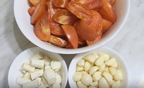 - Hoe mierikswortel koken met tomaten en knoflook, om niet zuur te worden?