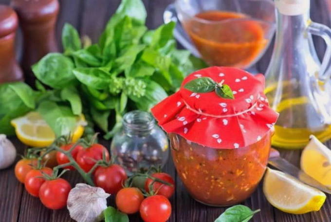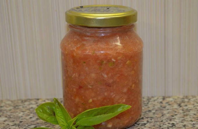 Mierikswortel met tomaten en knoflook voor de winter zonder te koken