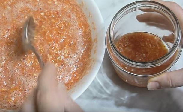 - Wanneer het zout, de suiker en de aspirine volledig zijn opgelost, doe de stront dan in gesteriliseerde potten, dek af met schone deksels en bewaar in de koelkast.