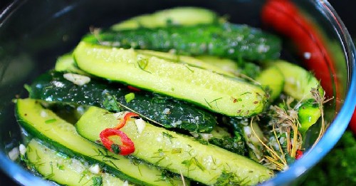 - Week de komkommers voor het koken 2 uur in koud water, dan krijgen ze een knapperige smaak.
