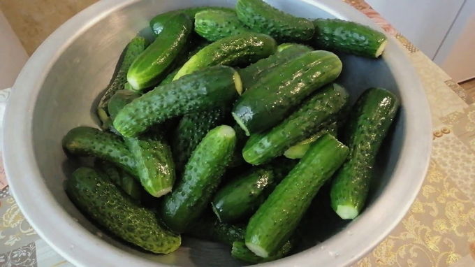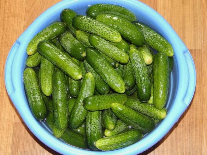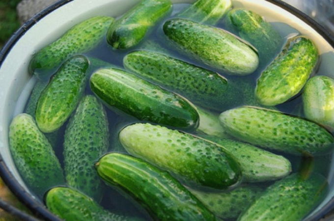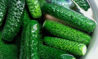 - Spoel jonge komkommers onder stromend koud water. Vouw de vruchten netjes in een kom of steelpan, bedek ze met ijswater en laat ze een paar uur rusten.
