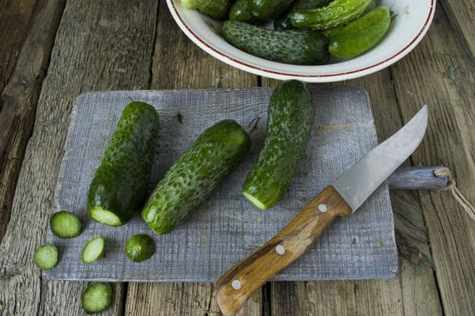 - Op de bodem van de container waarin je komkommers gaat pekelen, sneetjes wit brood legt en dan begint met het voorbereiden van de komkommers voor het beitsen. De vruchten moeten grondig worden gewassen, vervolgens voorzichtig de uiteinden afsnijden en de komkommers aan alle kanten doorboren met een vork.
