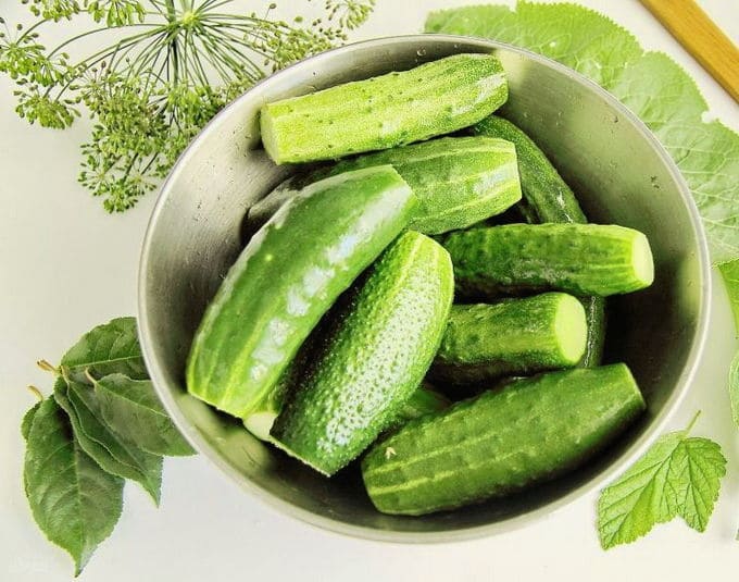 - Om komkommers met knoflook en dille te pekelen, moet je een handige container nemen - een pan, pot of kom en deze grondig wassen met zuiveringszout. Was de komkommers ook onder stromend water en laat ze een paar uur rusten in ijswater.
