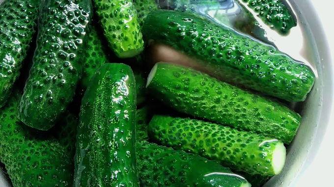 - Spoel jonge komkommers onder stromend koud water. Vouw de vruchten netjes in een kom of steelpan, bedek ze met ijswater en laat ze een paar uur rusten.