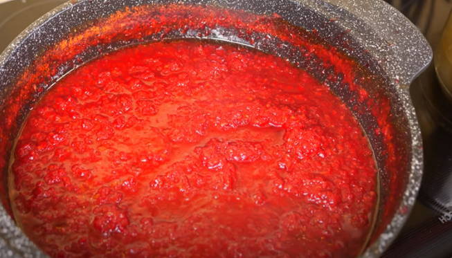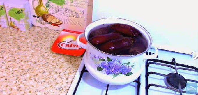 - Meng na aandringen de massa en plaats de container op het fornuis. Breng de kaviaar aan de kook en kook een uur op middelhoog vuur. Vergeet niet te roeren. Nadat de kooktijd is verstreken, zet u het vuur uit en verwijdert u de peperpeul uit de kaviaar.