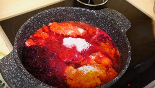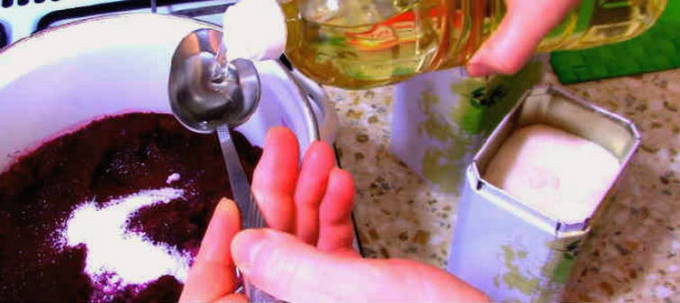 - We plaatsen de resulterende massa in een kookpot, voegen zout, kristalsuiker, plantaardige olie toe. Kook de massa na het koken een kwartier op laag vuur.