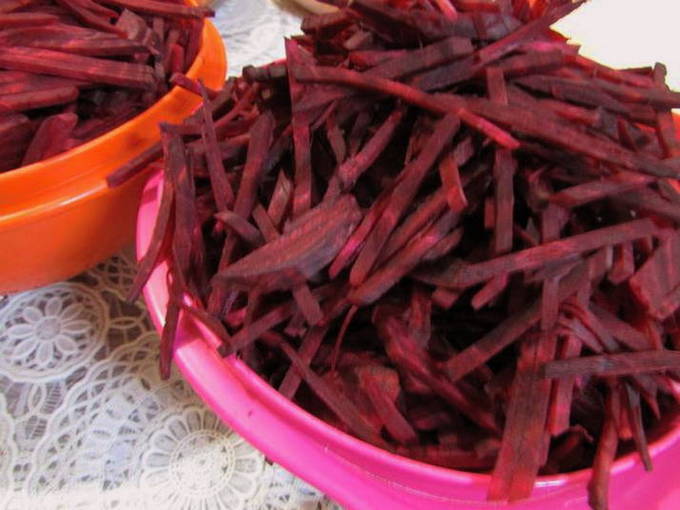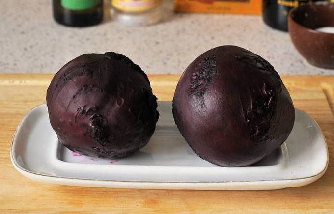 - Kook de bieten gaar. Laat het afkoelen, snij de huid eraf.