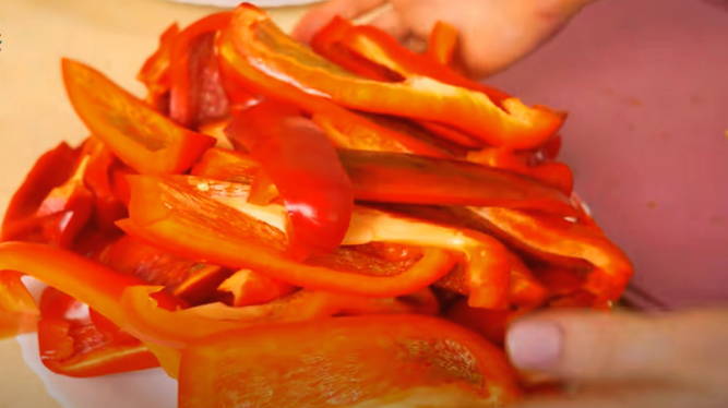 - We wassen de paprika's, bevrijden ze van zaden en stengels, in stukjes gesneden.
