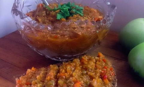 Heerlijke groentekaviaar van onrijpe tomaten, die in de winter zeker zijn plekje op tafel zal vinden. De kaviaar is fris, licht kruidig en ongelooflijk smakelijk.