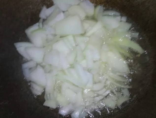 - Snipper de ui en bak in olie tot hij transparant is.