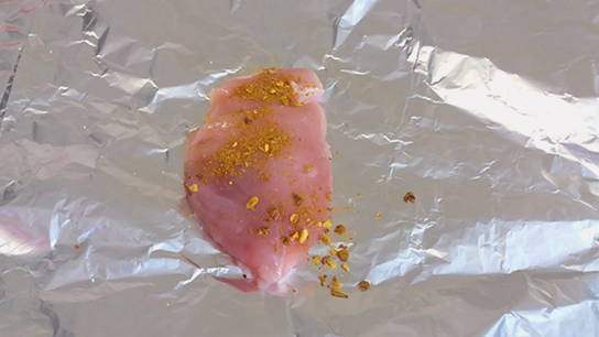 - Leg elk stuk kalkoen op een vel folie, zout en breng op smaak.