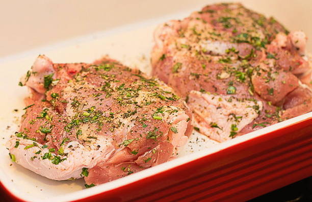 - Zet de oven aan om hem op te warmen tot 200 graden. Was de kalkoendijen en dep ze droog met keukenpapier.