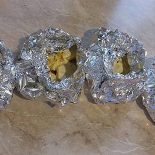 - Wikkel de blanco's in folie, laat een klein gaatje in het midden om stoom te laten ontsnappen.
