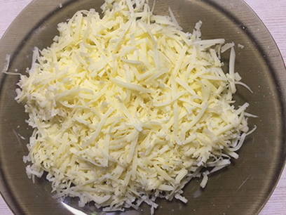- Rasp de kaas op een grove rasp.