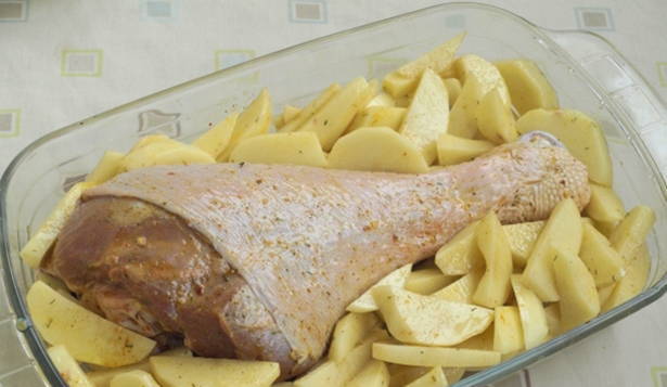 - Hoe kook je een sappige kalkoendij met aardappelen in de oven?