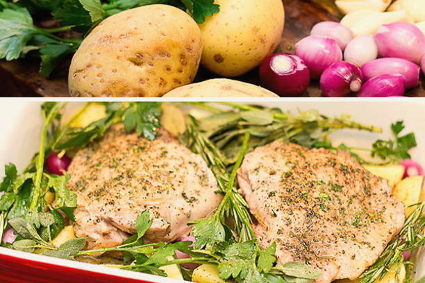 - Serveer de gebakken kalkoen en aardappelen direct in de potten.