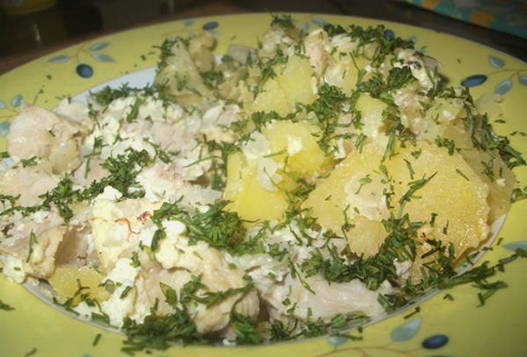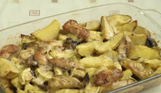 - Een eenvoudig en heerlijk recept voor kalkoen gebakken met aardappelen en kaas in de oven