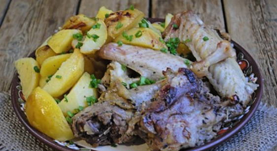 - Malse en zachte kalkoen gebakken met aardappelen in zure room