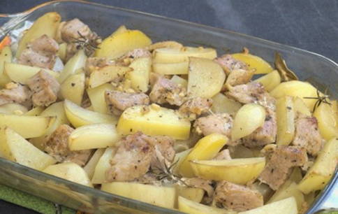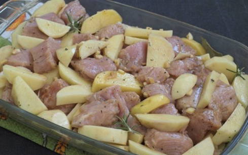 Een andere manier om een sappige gebakken kalkoen met aardappelen te maken. De eenvoud van dit gerecht zit in de weinige ingrediënten en de gemakkelijke bereidingswijze.